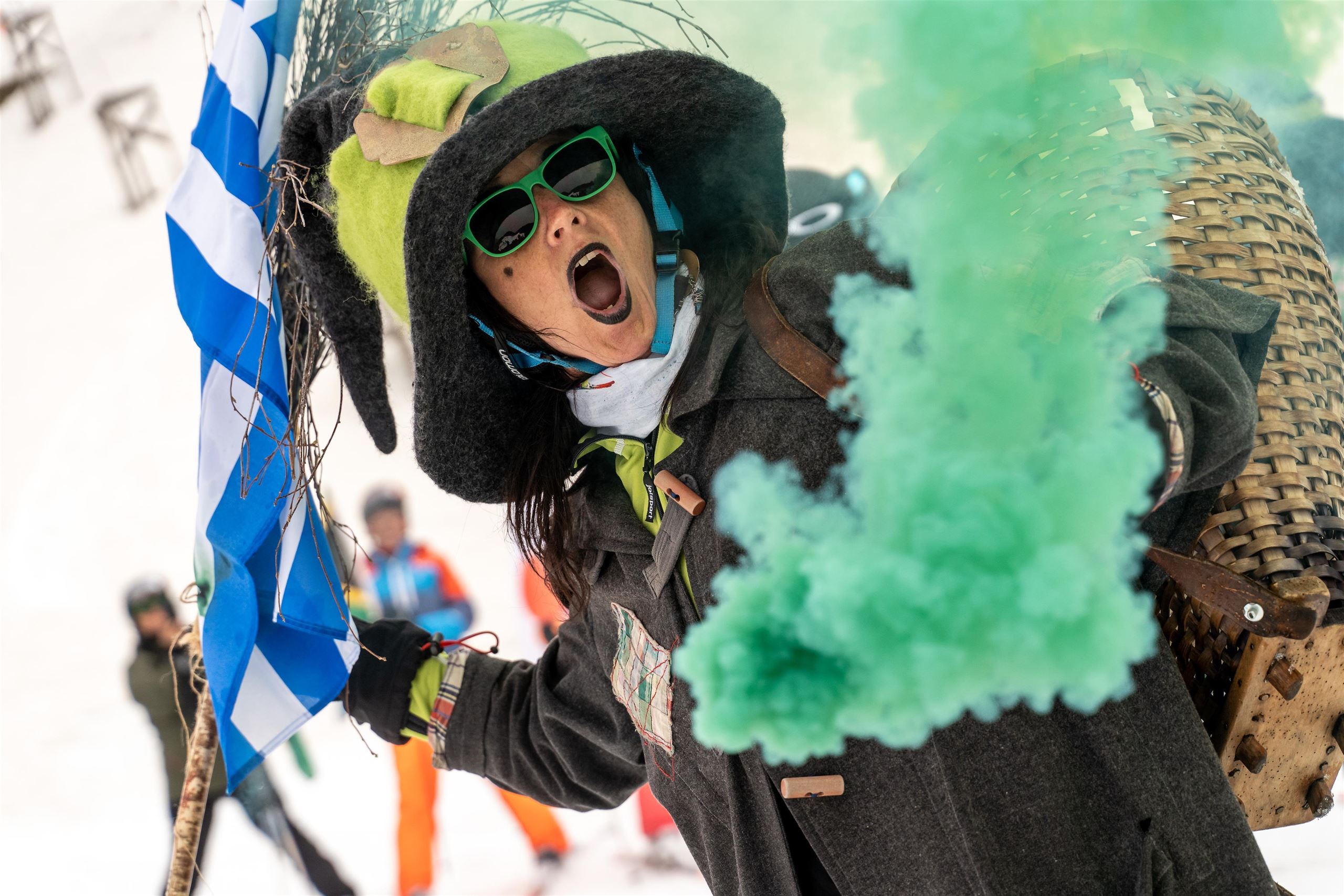 Gegen 13:10 Uhr startet die St. Patrick’s Day Ski-Parade: Fahnenausgabe und gemeinsame Abfahrt mit der Skischule Söll–Hochsöll. Danach können Sie die Winter-Hexen im grünen Rauch begleiten.